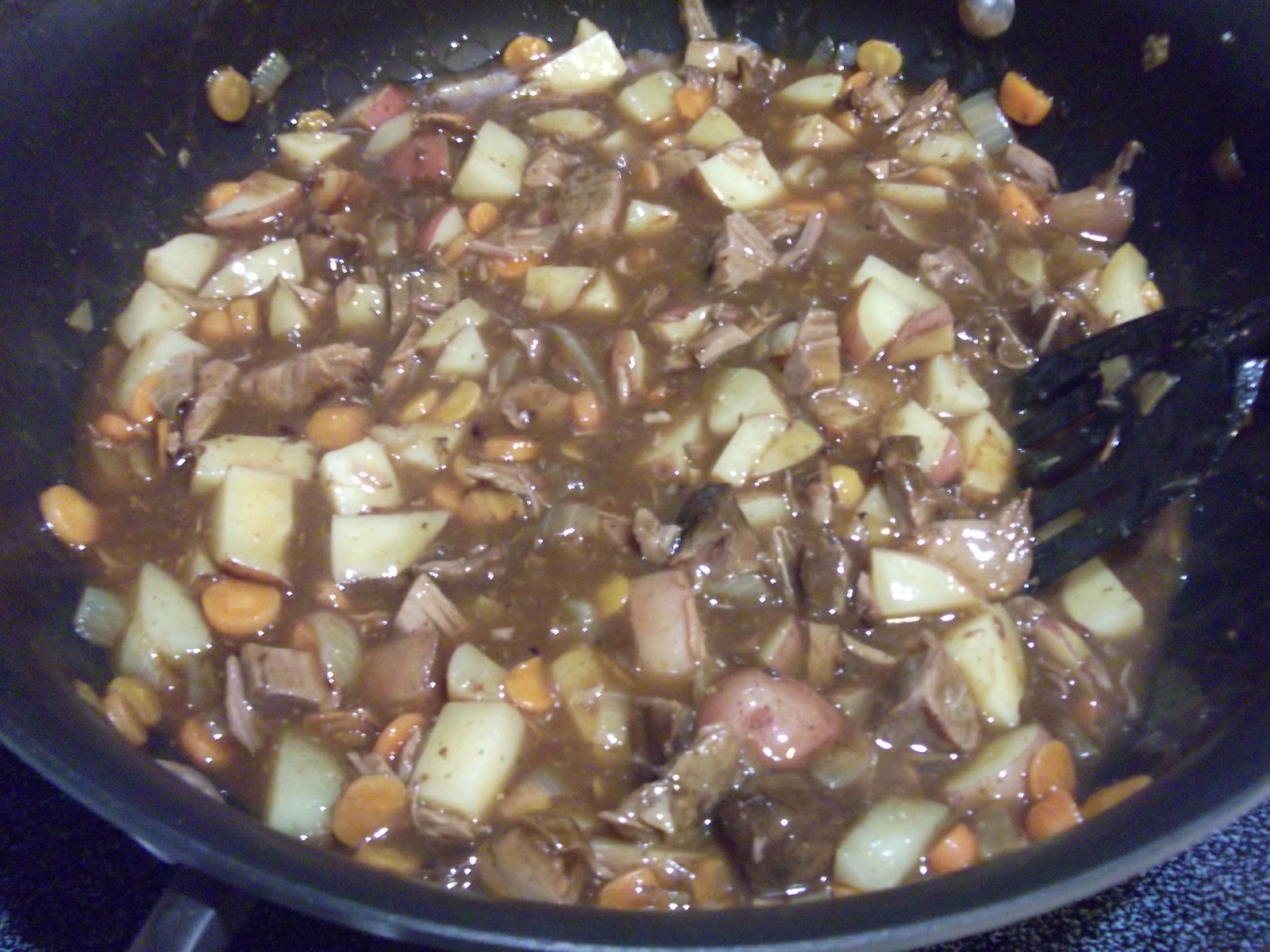 2 C leftover or jar gravy (I used jar au jus)